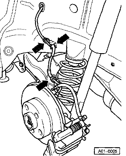 - Cut wheel speed sensor wire in front of spliced connection with stripping pliers from wiring repair kit VAS 1978and remove faulty wiring.