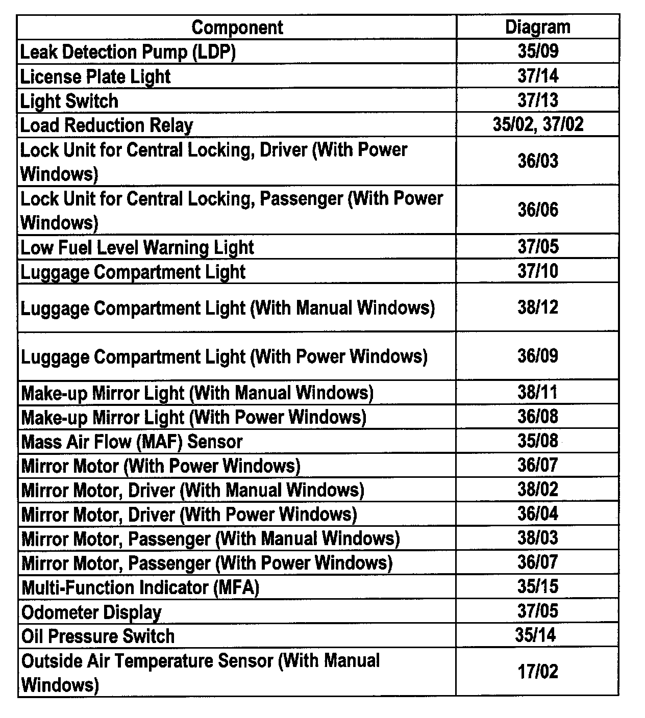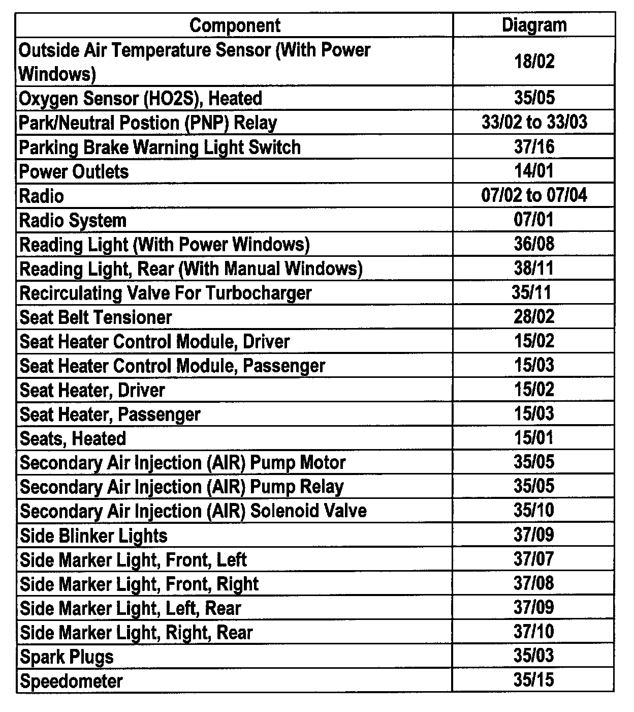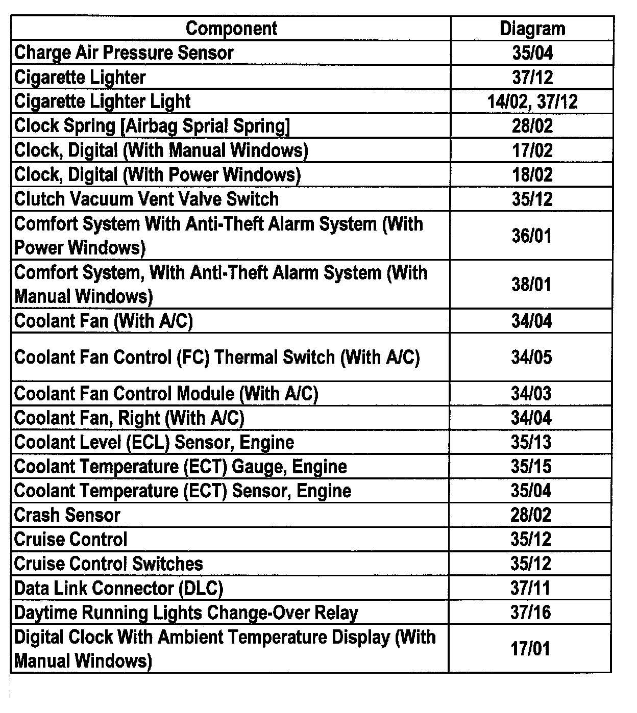 Master Diagram Index