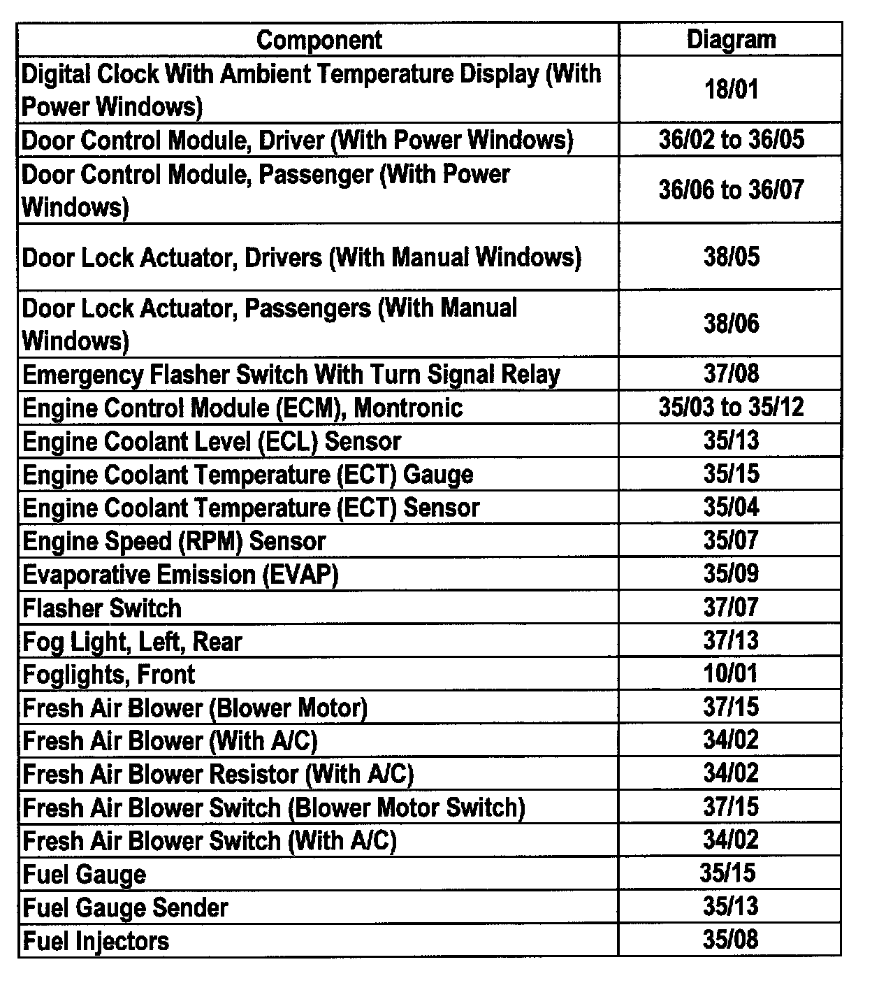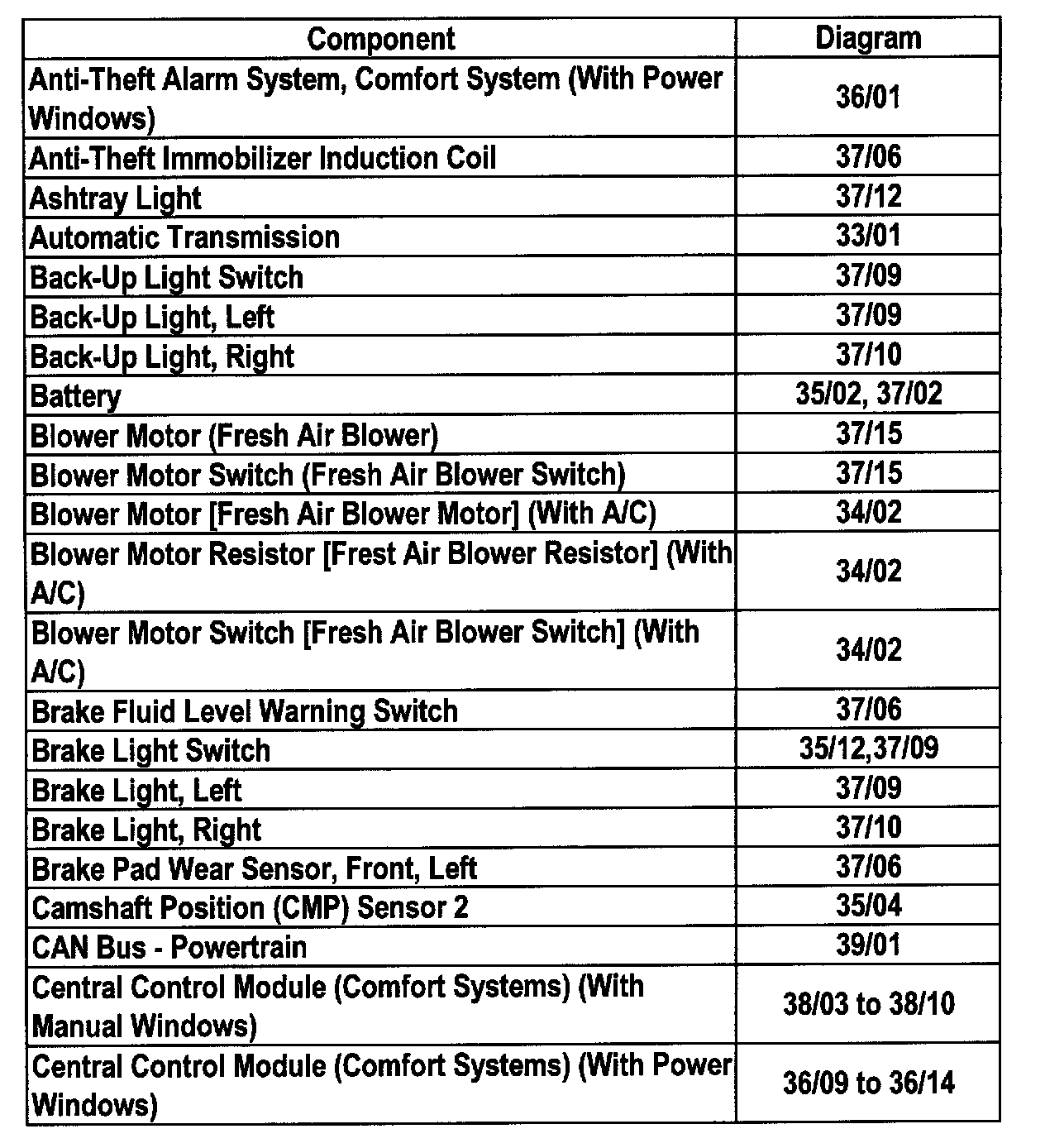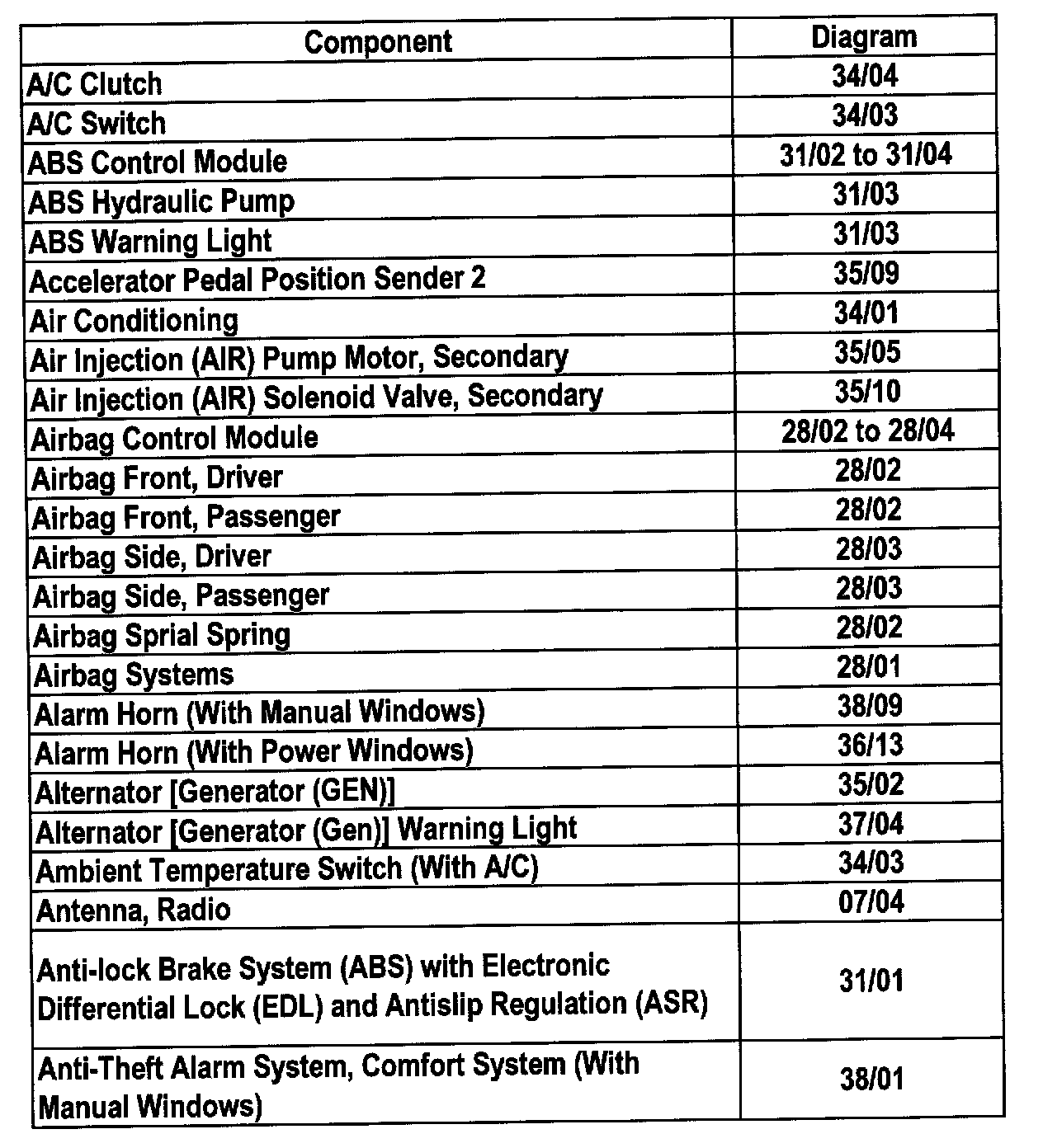 Master Diagram Index