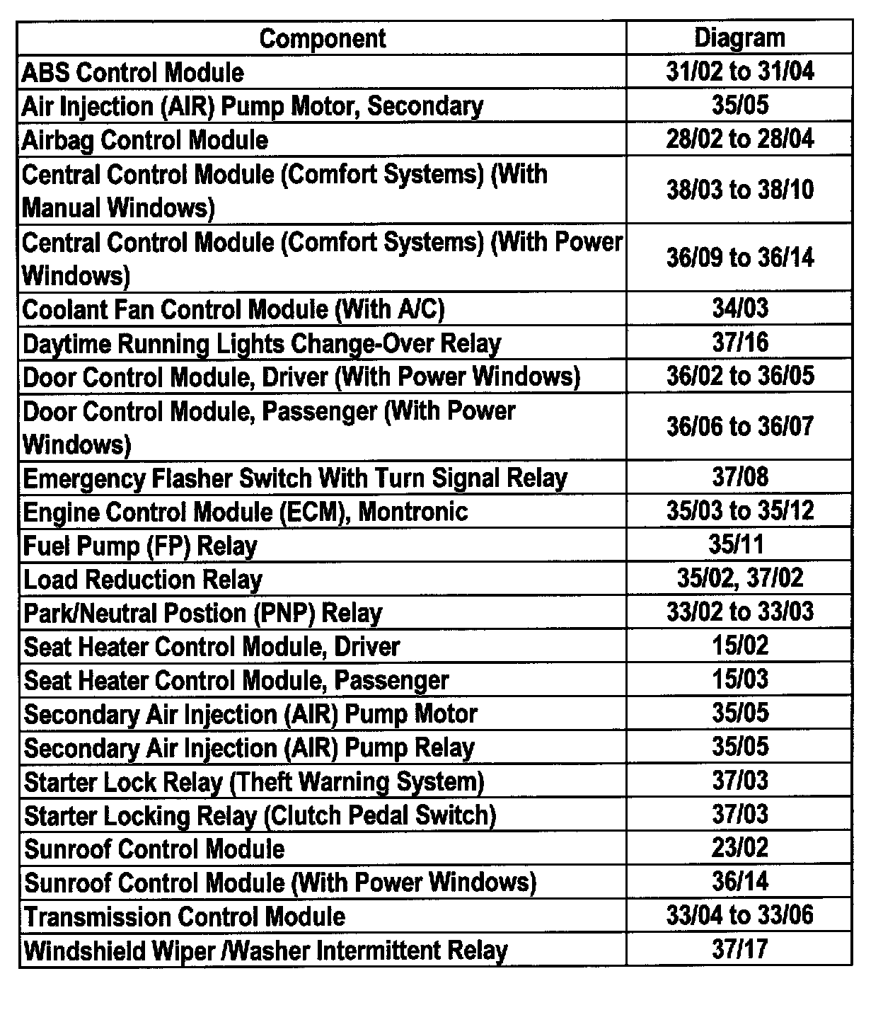 Master Diagram Index