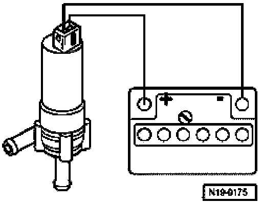 - Connect contacts of After-run coolant pump -V51- to battery using auxiliary cables from VAG 1594.