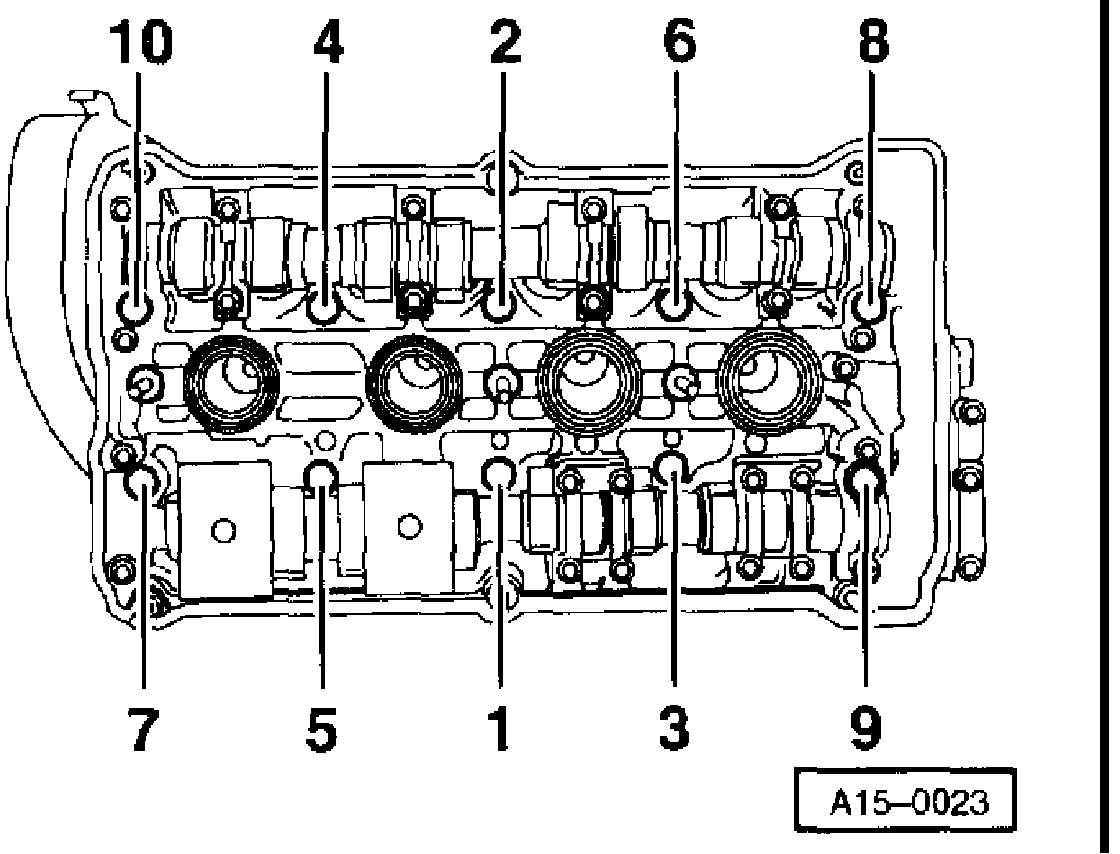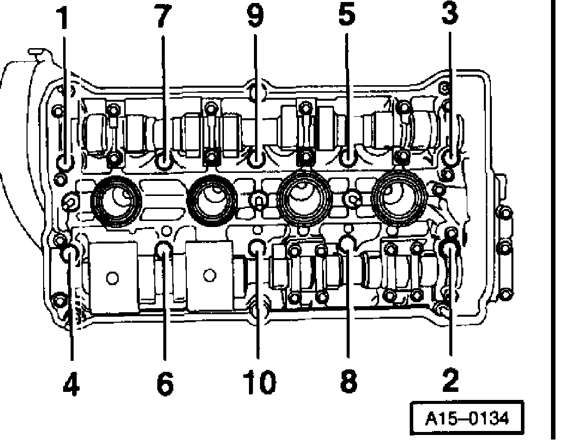 - Tighten cylinder head in tightening sequence as follows: