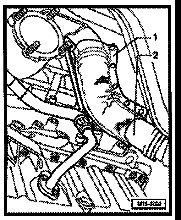 - Remove heat protection pad 1 from air guiding hose 2 (observe installation position).