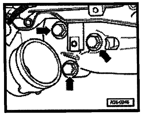 - Remove three exhaust gas turbocharger/exhaust manifold securing bolts -arrows-.