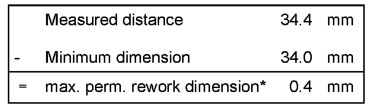 - Calculate max. permissible reworking dimension from measured distance and minimum dimension.