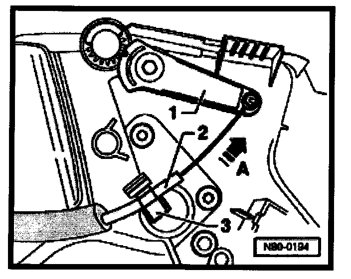- Push temperature flap lever -2- onto stop -arrow A- and secure outer cable -1- with clip -3-.