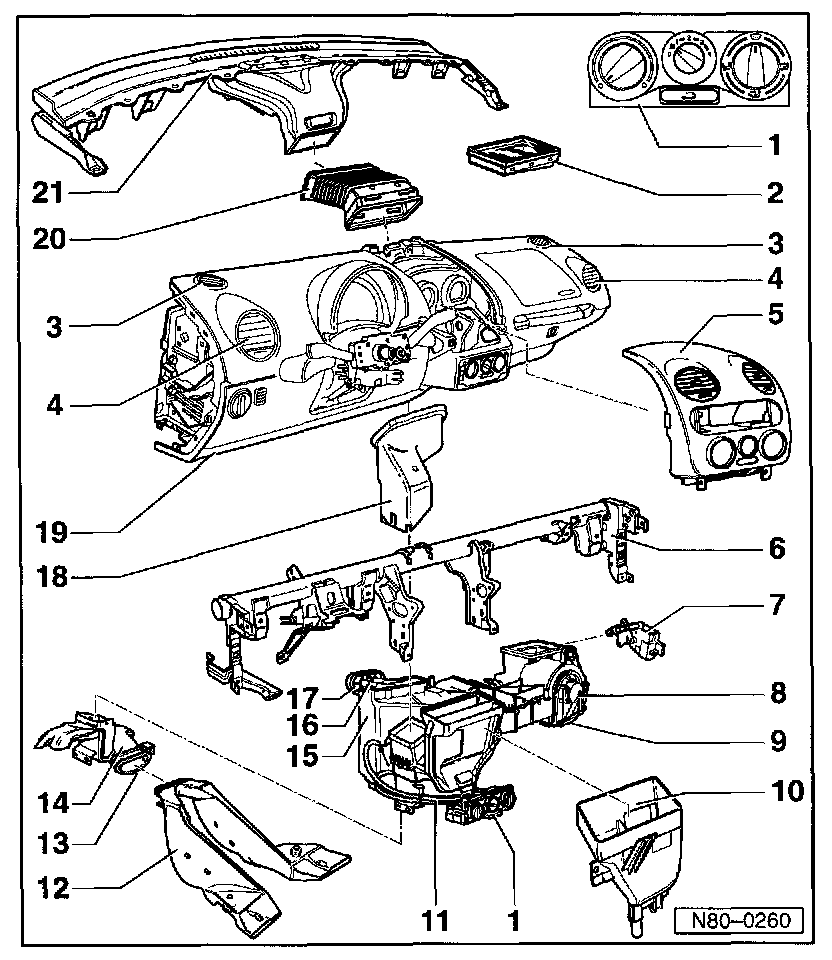 - Removing and installing refer to "Control Assembly Removing and Installing/Heating and Ventilation Controls". Service and Repair