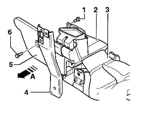 To access or remove heating and ventilation unit, lift cross member in direction of -arrow A- and support.