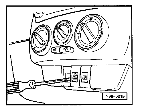 Removing and installing is the same procedure for all switches, only the hazard warning light switch -E3- is described here.
