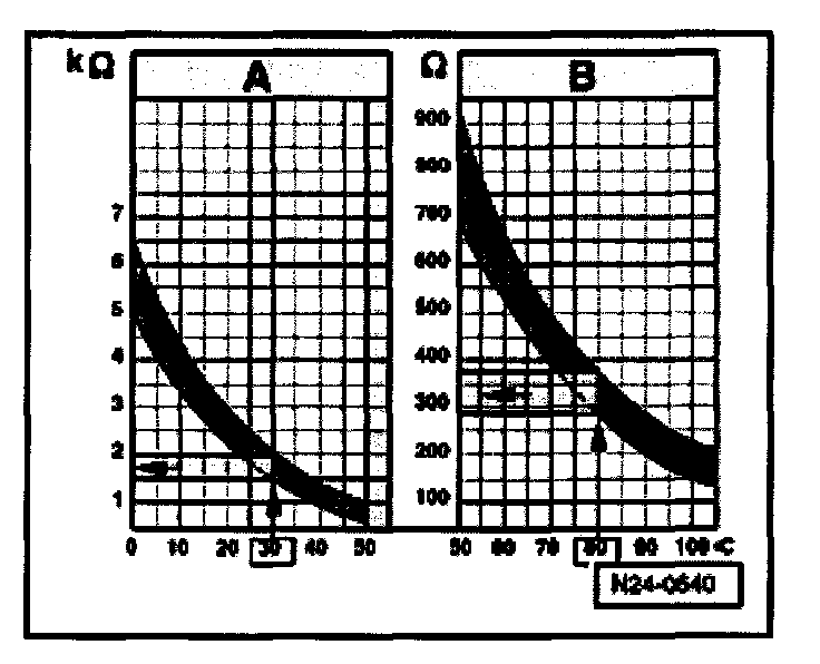 NOTE: The Engine Control Module (ECM) will use a replacement temperature value for an engine start as soon as there is a DTC stored in the DTC memory which affects the Engine Coolant Temperature (ECT) sensor -G62-. The temperature then rises according to a model stored in the ECM. When the engine has reached normal working temperature a fixed replacement value will be displayed after a certain period. This fixed value is also dependent on intake air temperature.
