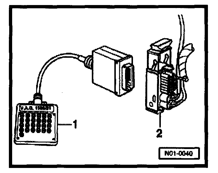 - Connect VAG1598/21 test box -1- to ABS control module wiring harness -2-.