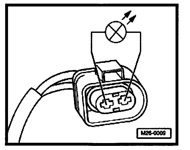 - Connect diode test lamp V.A.G 1527 using adapter cables from V.A.G 1594 to detached connector.