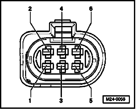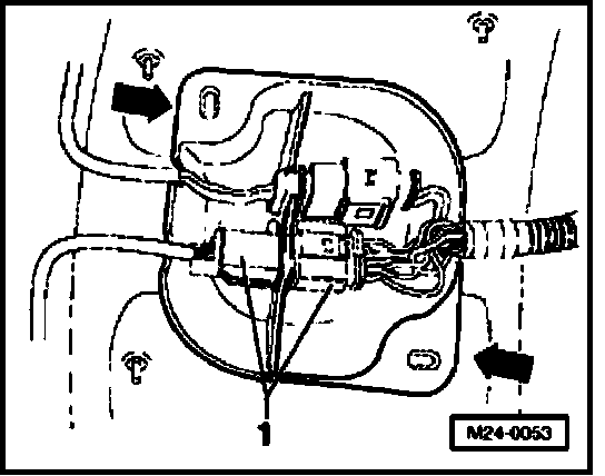 - Unscrew protective cover (arrows) and disconnect 6-pin harness connector (black) -1- to Heated Oxygen Sensor (HO2S) -G39- before catalytic converter.
