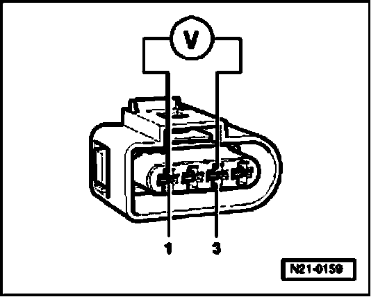- Use adapter cables from (VAG1594) to connect multimeter to terminals 1 + 3 of connector for voltage measurement.