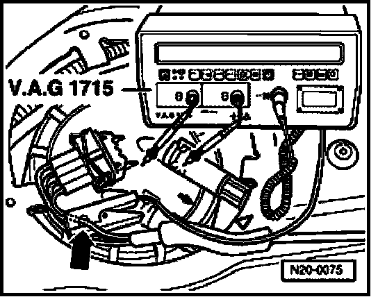 - Connect multimeter (VAG1715) with electrical current probe to wire of 4-pin connector (terminal 1 arrow) from wiring harness.
