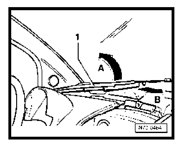 - Lift left cover -1- of plenum chamber in center of instrument panel (arrow A) and thereby unclip (front edge clips, rear edge clamps).