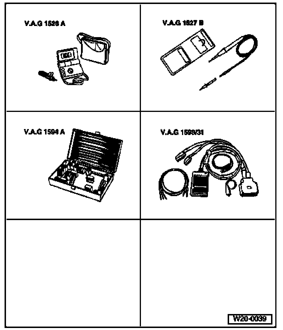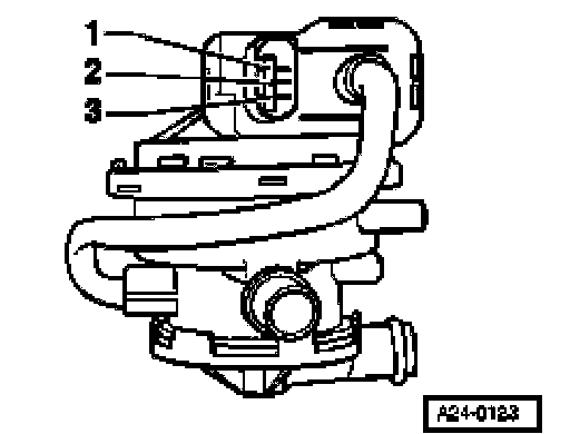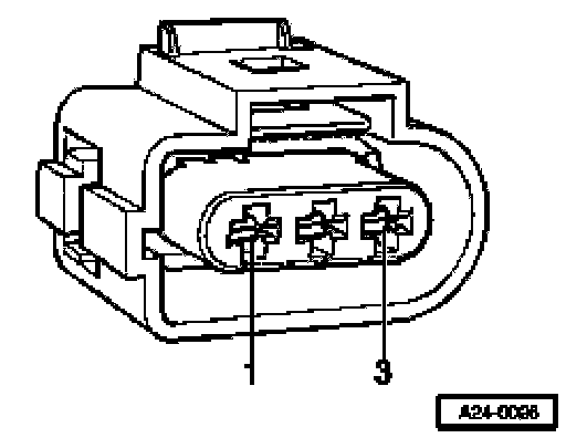 - Connect LED test light VAG 1527 between connector terminal 3 (positive) and engine Ground.
