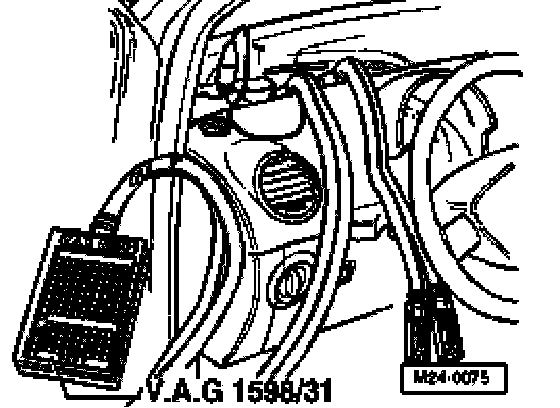 - Connect test box VAG 1598/31 to control module wiring harness. Engine Control Module is not connected by this action.