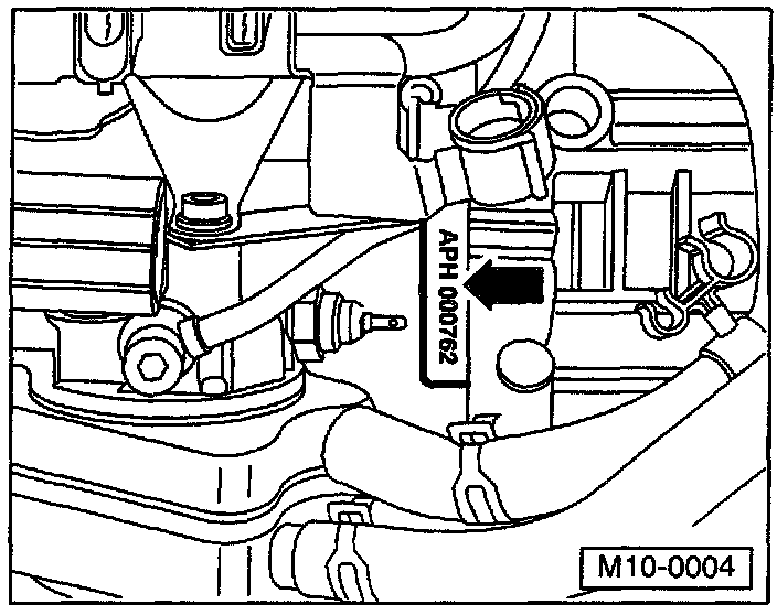 Engine number "Code letters" and "Serial number" can be found on the front of the engine near the engine / transmission joint (Engine code APH shown).