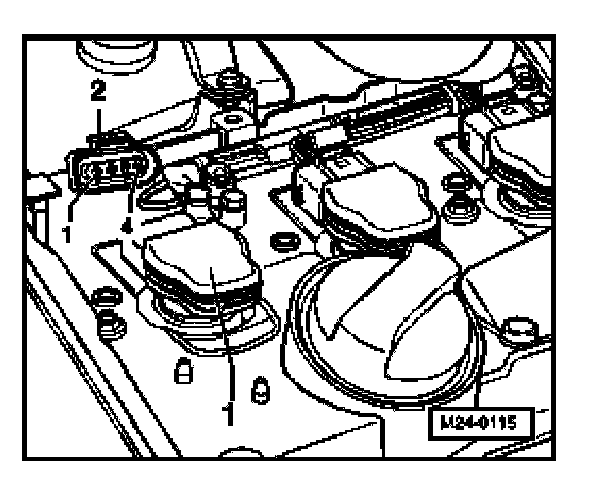 - Disconnect 4-pin connector -2- from ignition coil -1- to be checked.