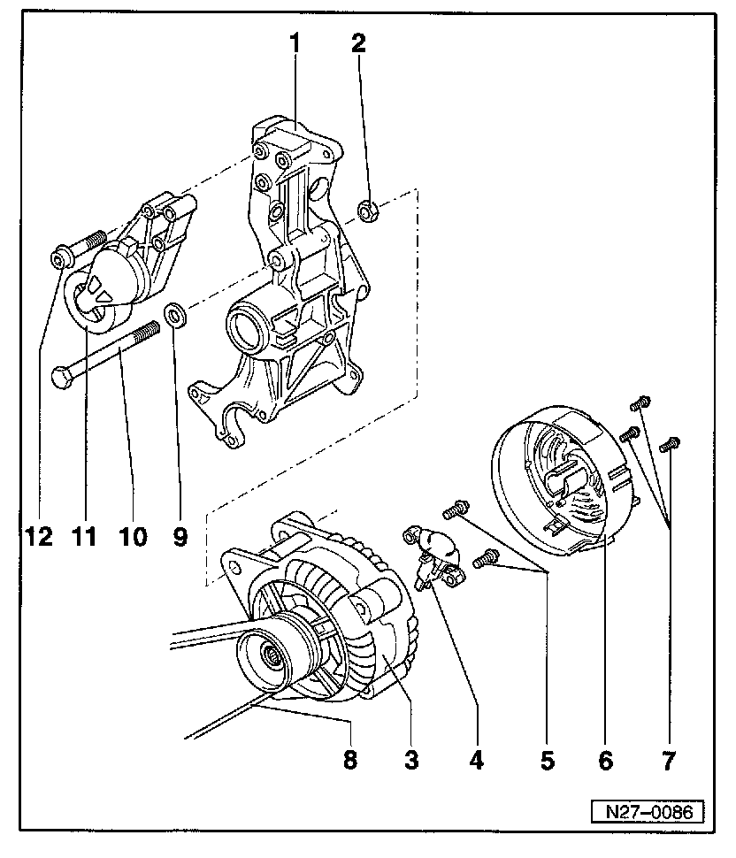 - Removing and installing refer to "Ribbed Belt, Removing and Installing". Service and Repair