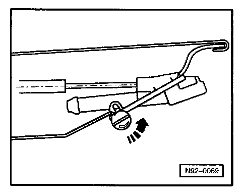 Using screwdriver, turn eccentric on spray jet in direction of arrow to move spray field on windshield upward.