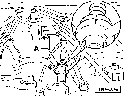 - Loosen vacuum hose clamp (arrow -A-) and remove hose from pump.