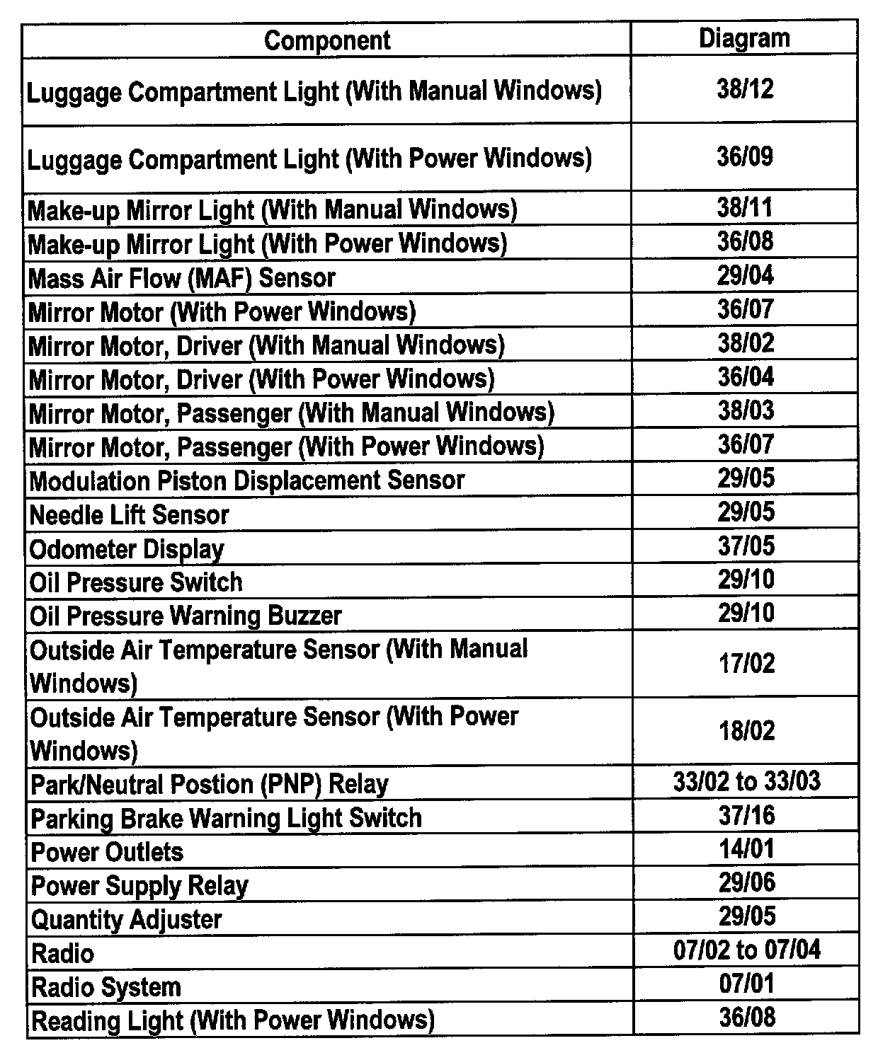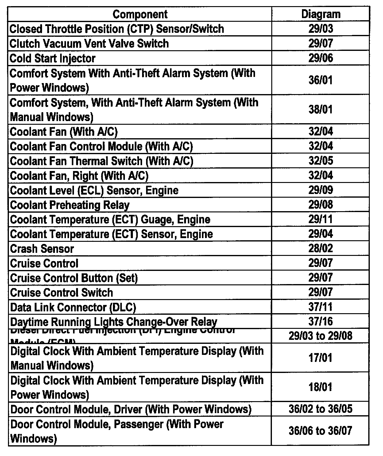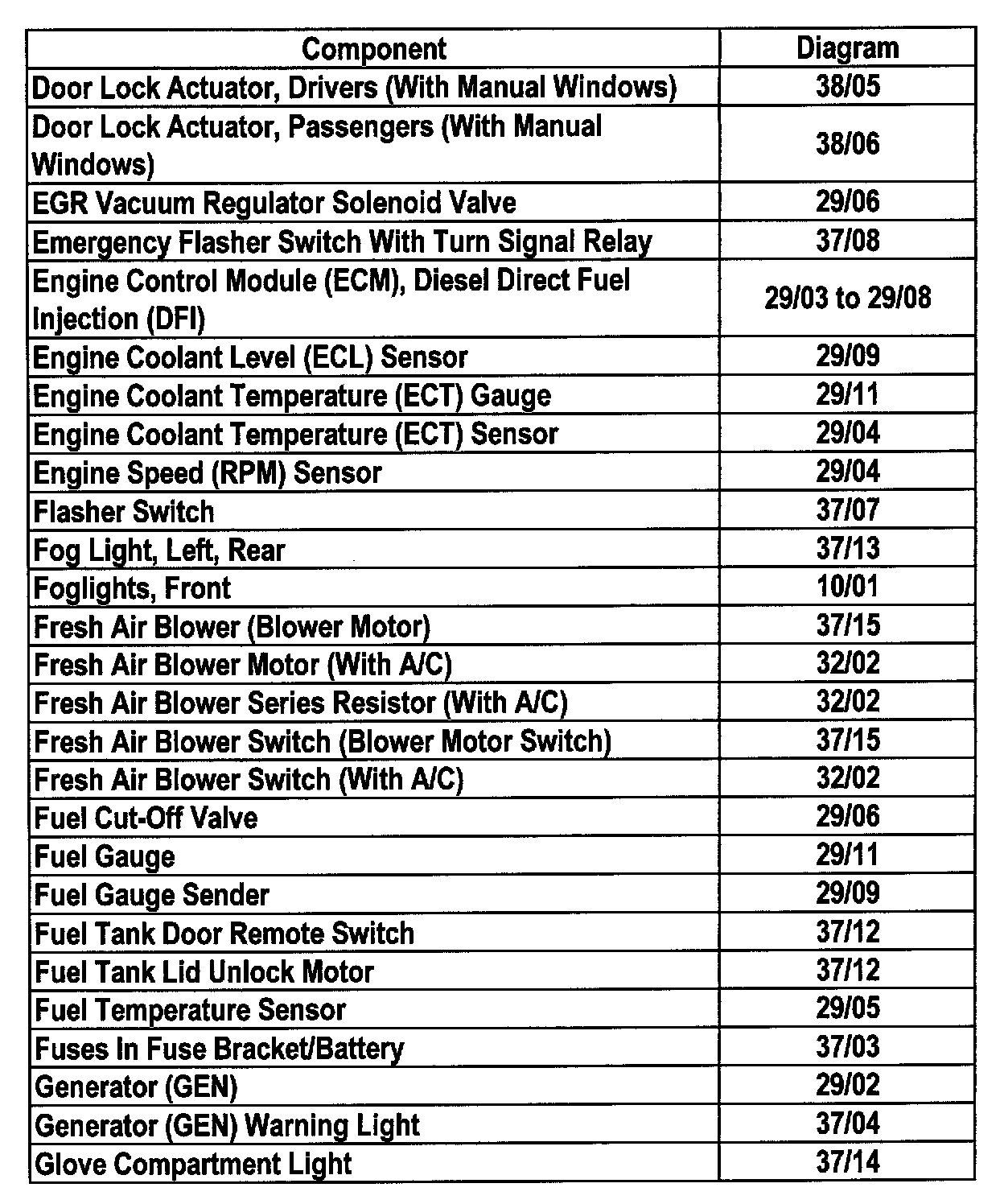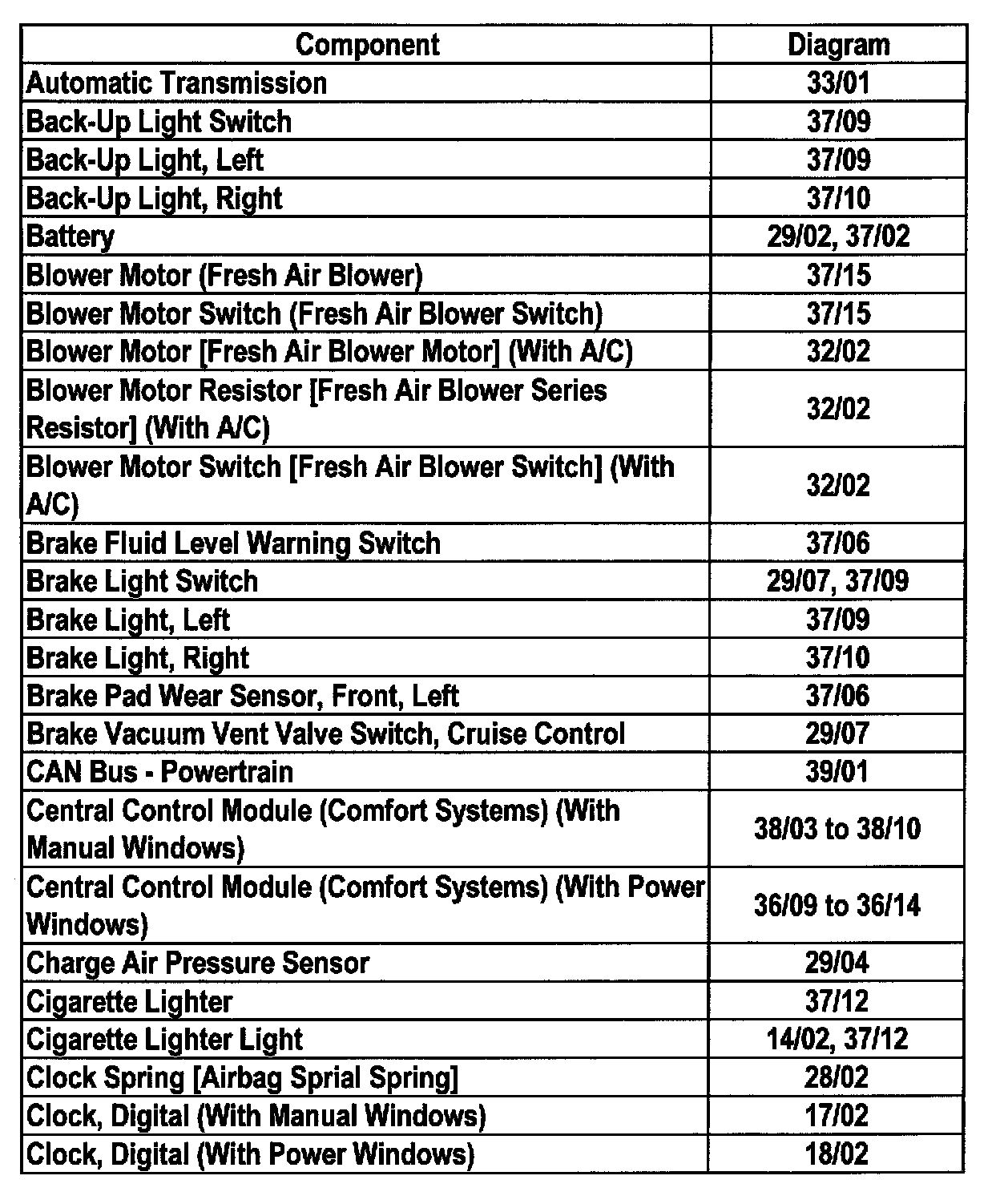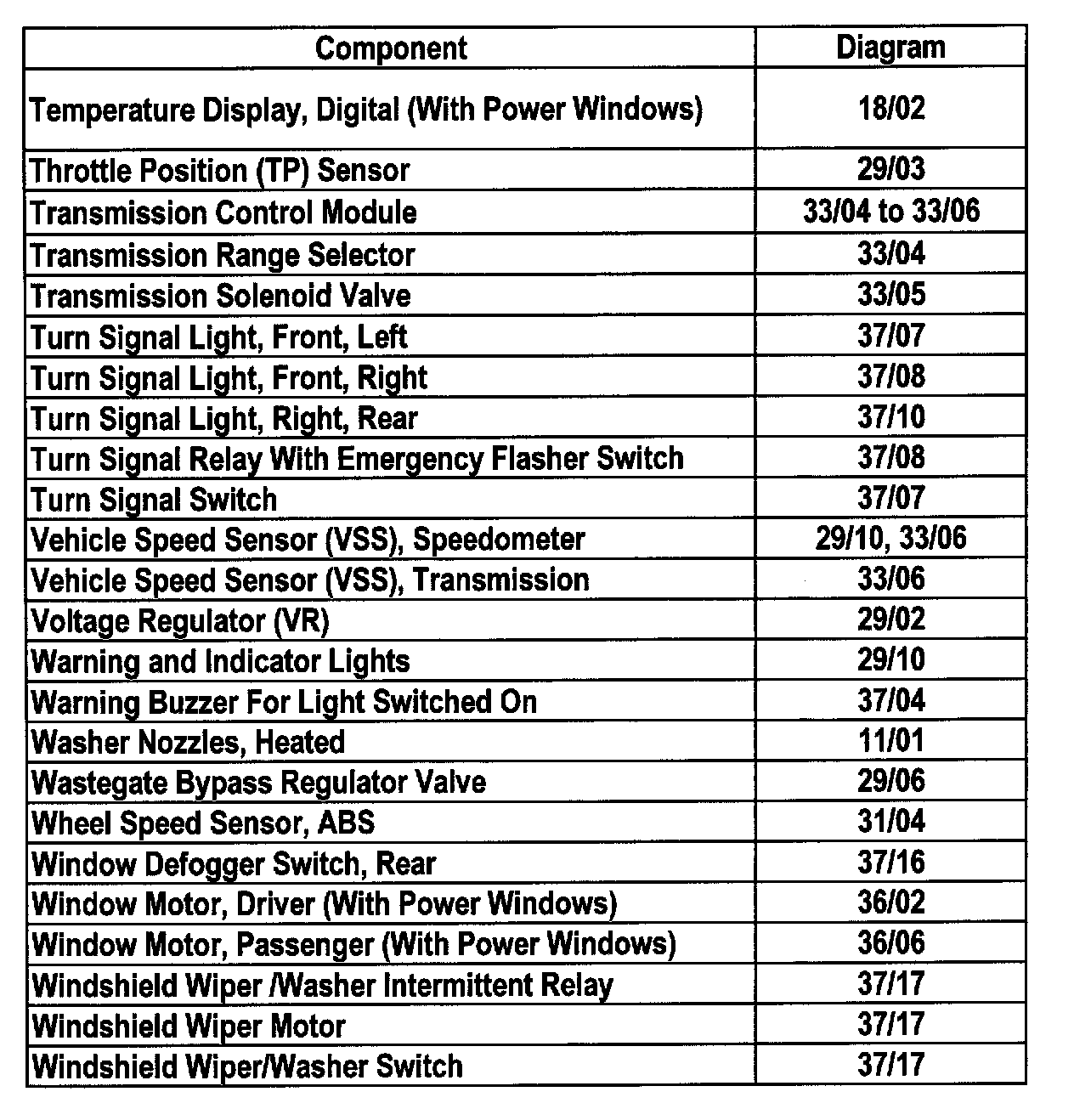 Master Diagram Index