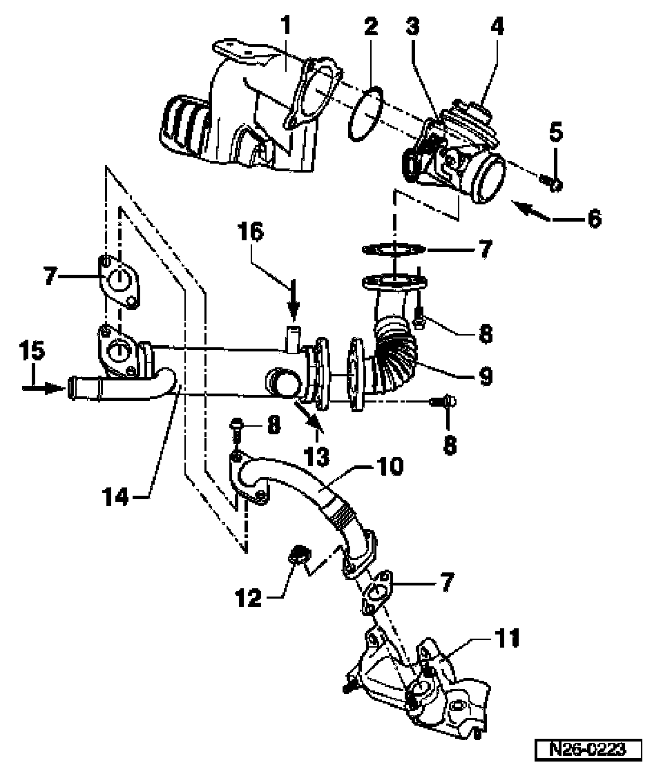 - EGR cooler to exhaust elbow