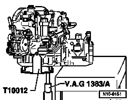 - Transfer Engine/transmission subassembly to workbench via VAG 1383 A engine/transmission jack.