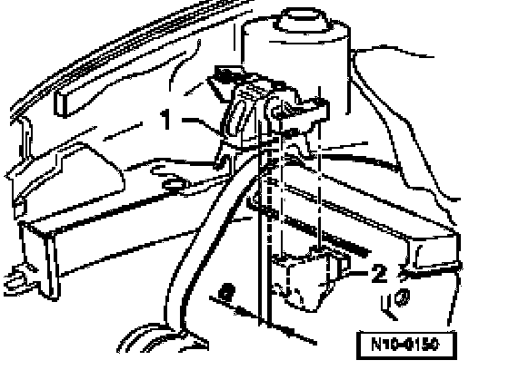 - Engine and Transmission subassembly is aligned transversely so there is a distance between engine mount -1- and engine bracket -2- of approximately 10 mm (installed condition).