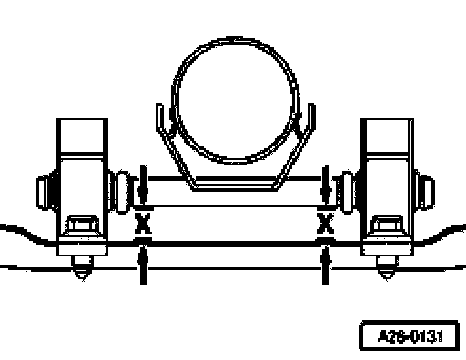 Note: Mounting pins on exhaust pipe must run parallel with tunnel bridge (dimension -x- on left and right = the same).