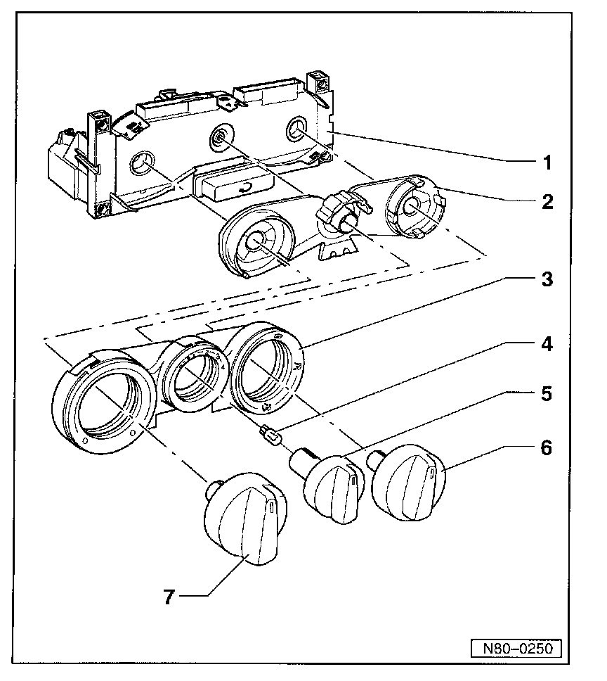 - Removing and installing refer to "Control Assembly Removing and Installing/Heating and Ventilation Controls". Service and Repair