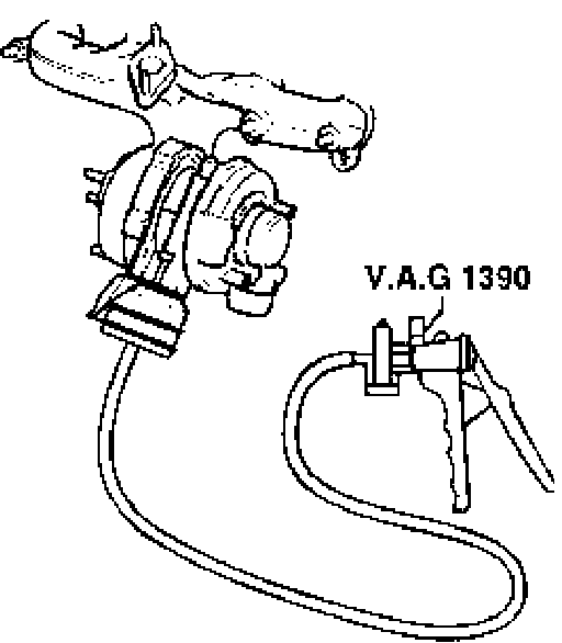 - Connect VAG 1390 vacuum pump to Wastegate Bypass Regulator valve and check rod for ease of movement.