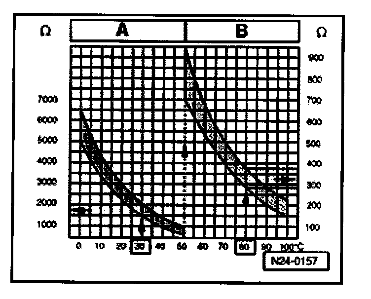 - 30 °C corresponds to a resistance from 1500 to 2000 Ohms
