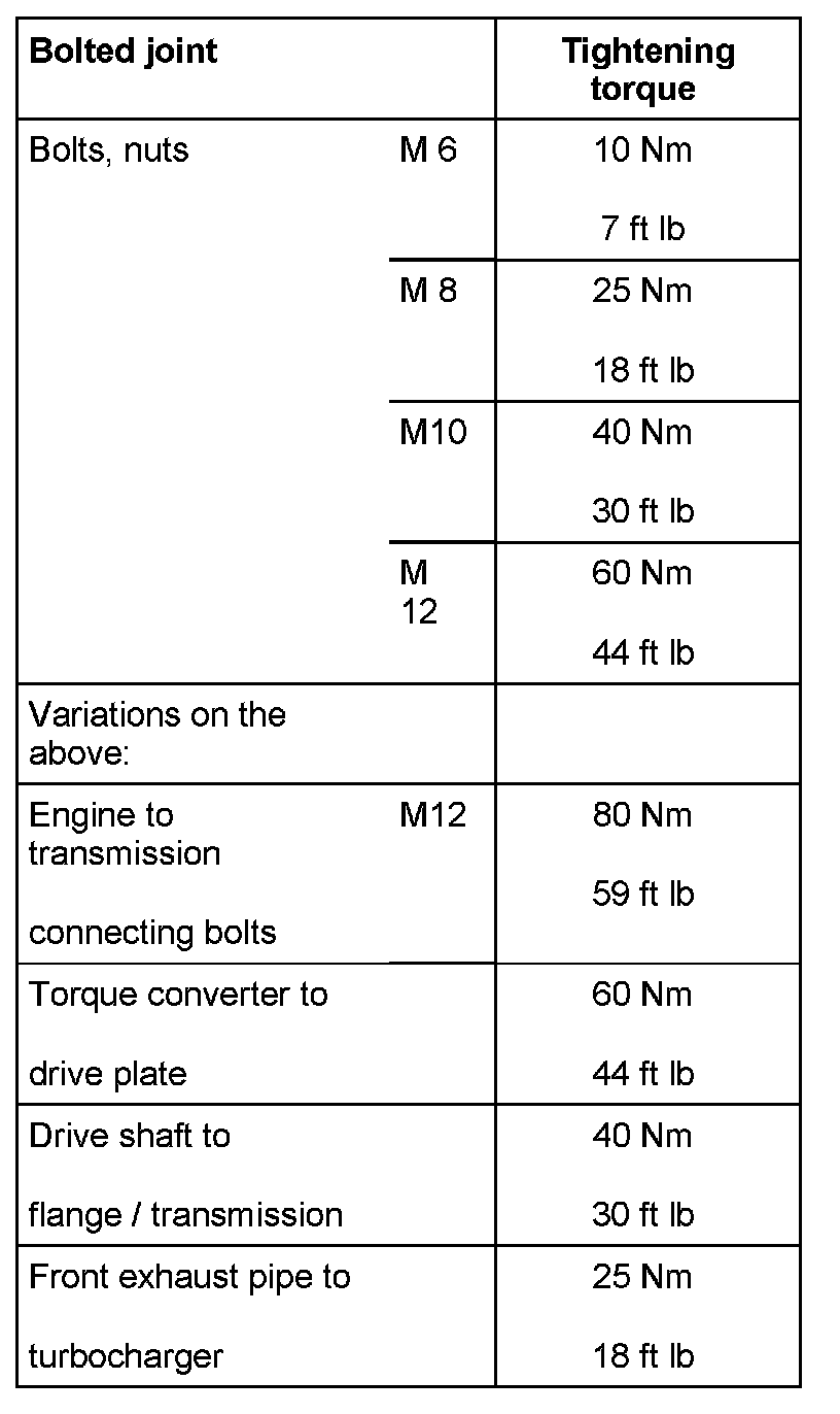 Exhaust Manifold Bolts 25 Nm (18 ft. lbs.)