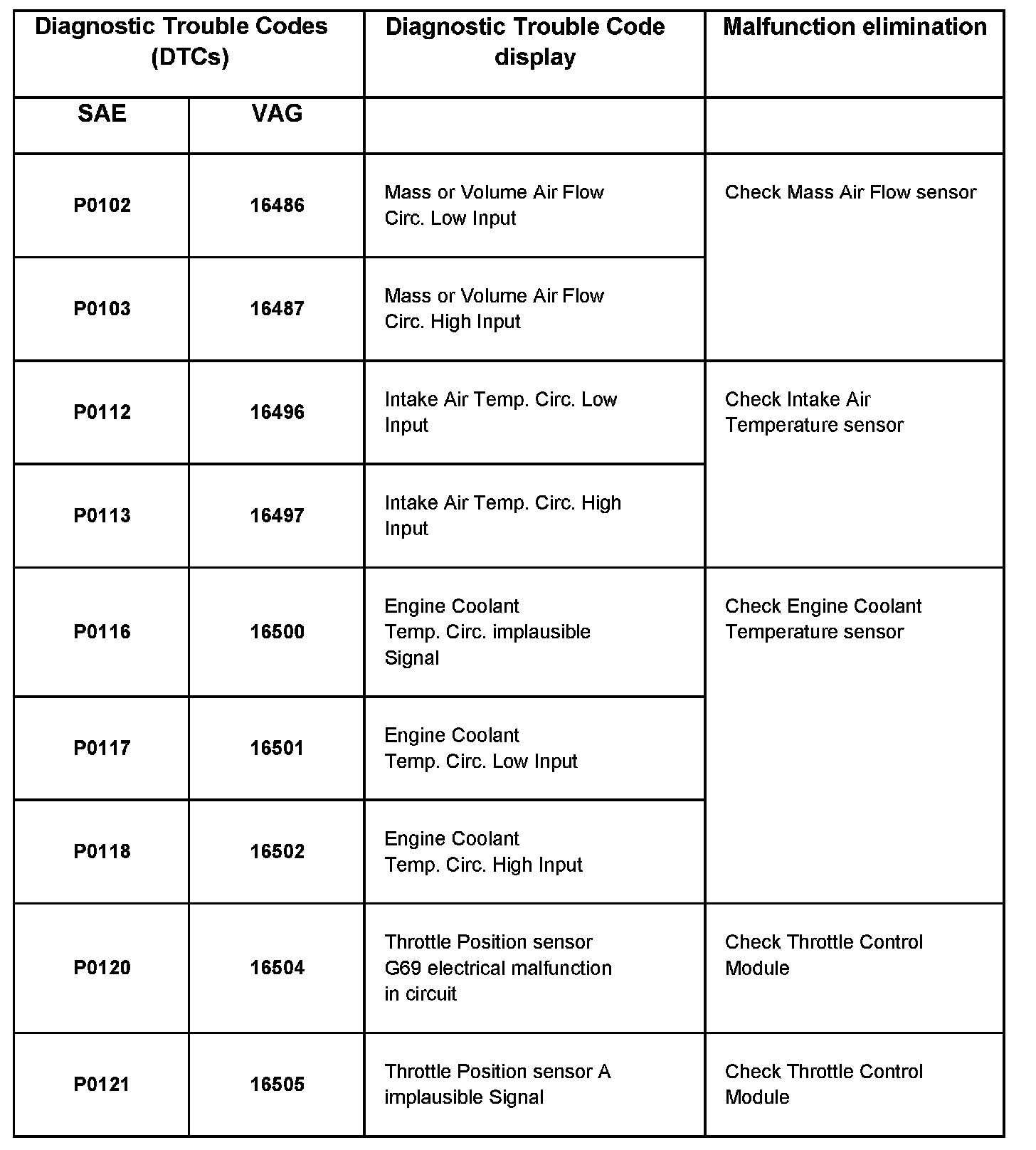DTC P0102 - P0121: