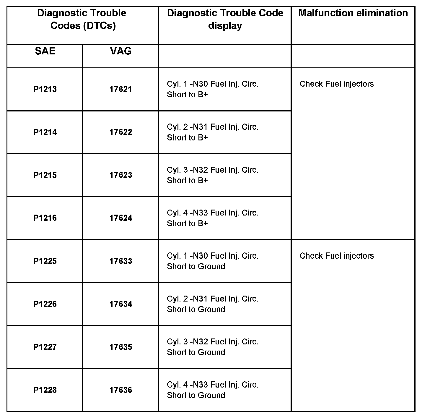 DTC P1213 - P1228: