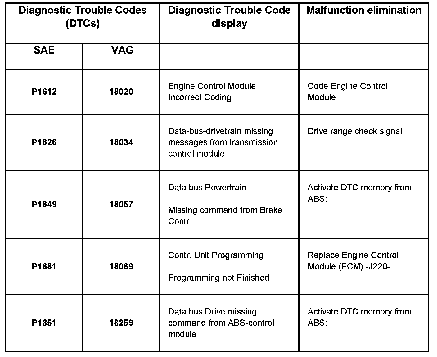 DTC P1612 - P1851: