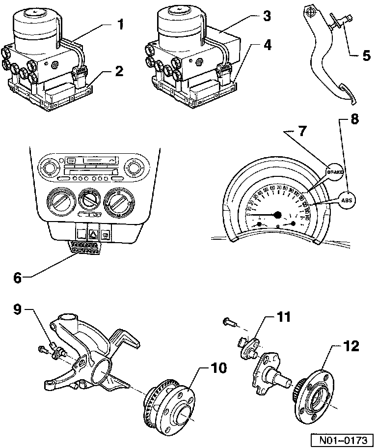11. ABS wheel speed sensor -G44-/-G46- (rear)