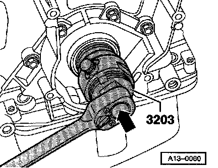 - Lubricate threaded head of oil seal extractor 3203, place it in position and exerting firm pressure screw it as far as possible into oil seal.