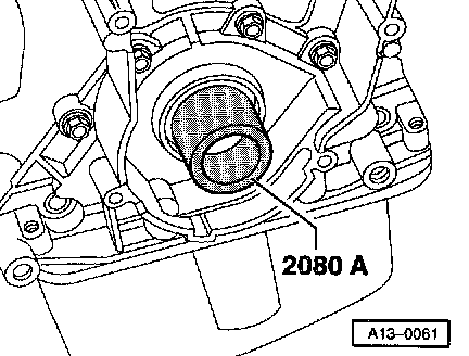- Press in seal with press sleeve from 3266, using old center bolt for crankshaft toothed belt sprocket: