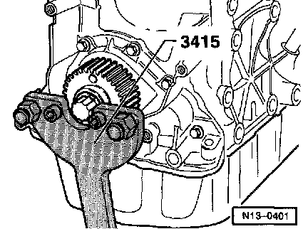 - Remove crankshaft toothed belt sprocket by counterholding sprocket with 3415.