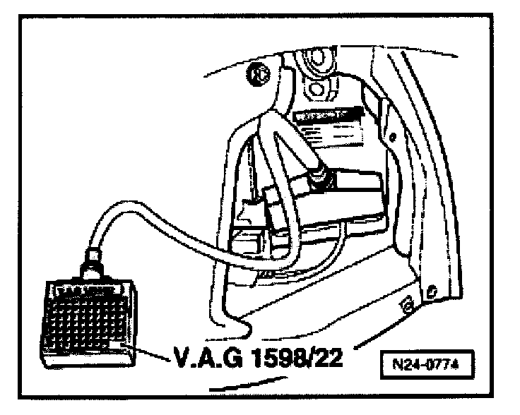 - Connect VAG 1598/22 Test Box to ECM wiring harness.