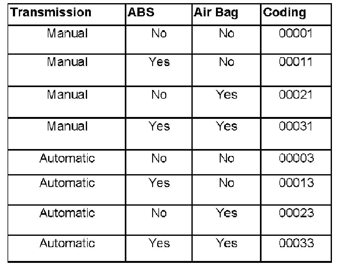 NOTE: The coding values entered and shown on the display will not be used by the Motronic Control Module UNTIL the ignition has been switched OFF once.