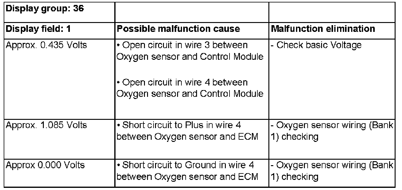 - Check specifications for Oxygen control after Three Way Catalyst (Display fields 1 to 4).