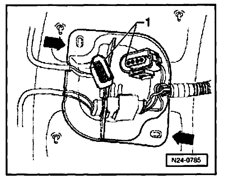- Remove protective cover -arrows- and disconnect brown 4-pin harness connector to Oxygen sensor G39 (before Three Way Catalyst).
