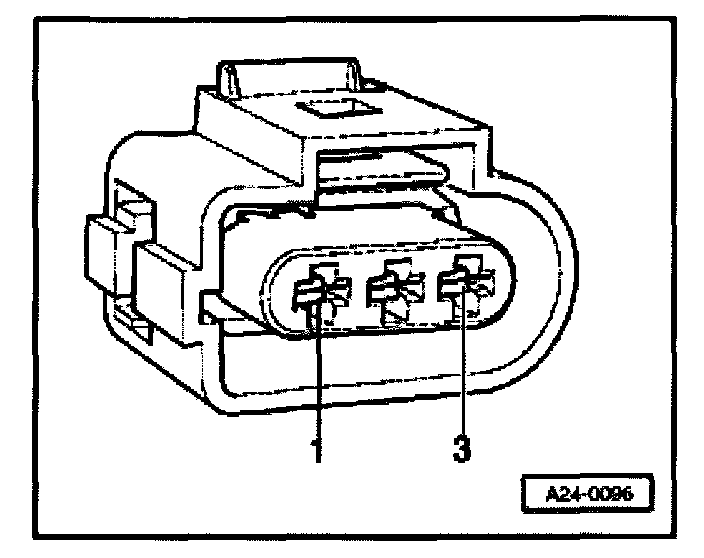 - Connect VAG1527 B Voltage Tester between connector terminal 3 (Battery Plus) and engine Ground.