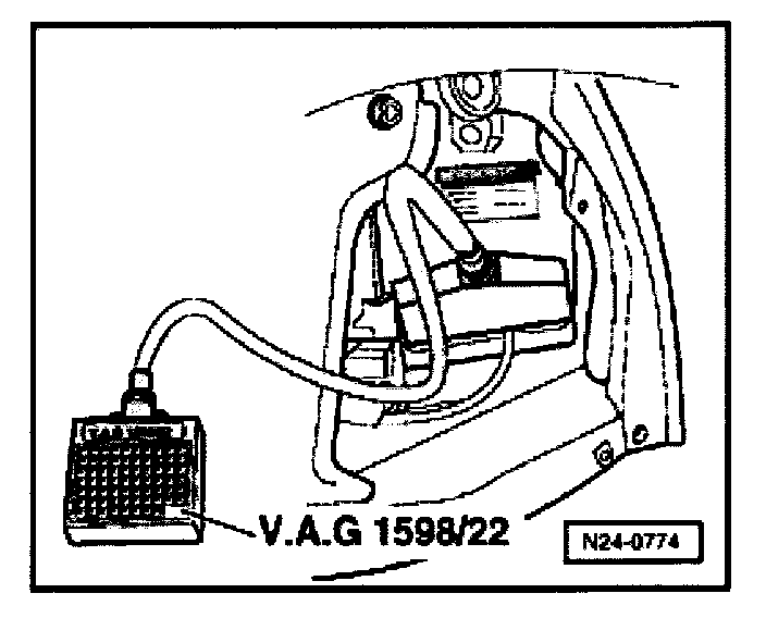 - Connect test box VAG 1598/22 to ECM wiring harness.