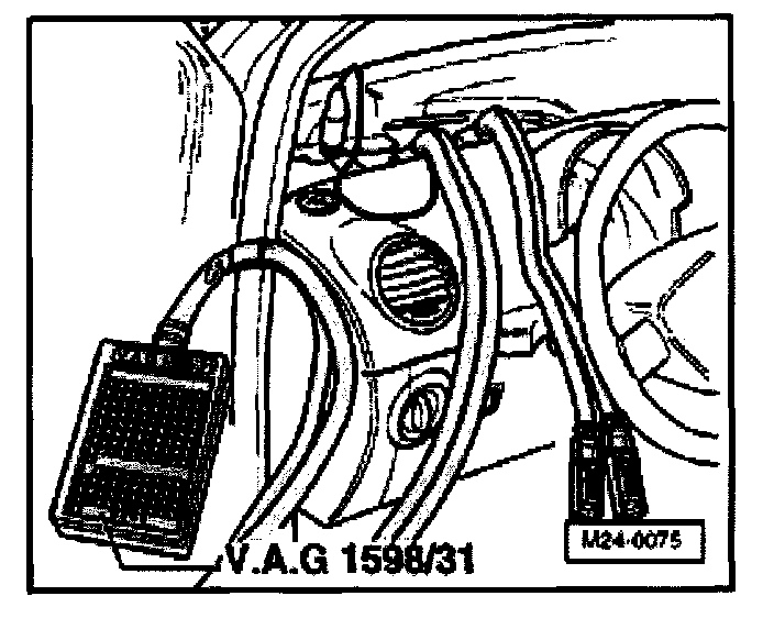 - Connect test box VAG1598/31 to control module wiring harness. The engine control module is not connected by this action.